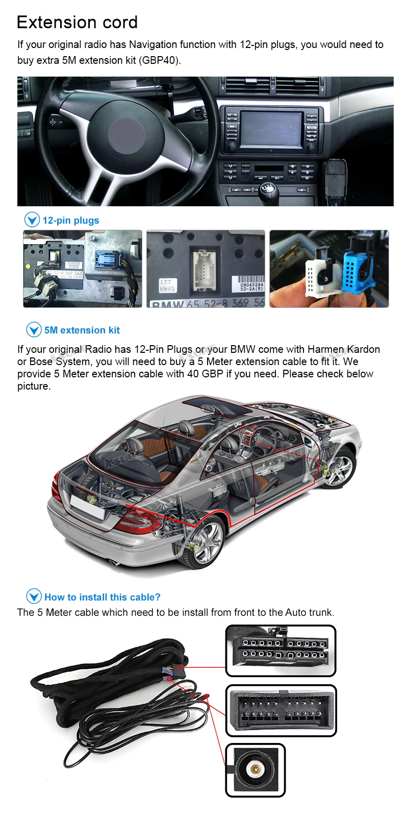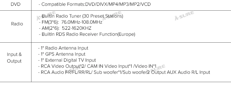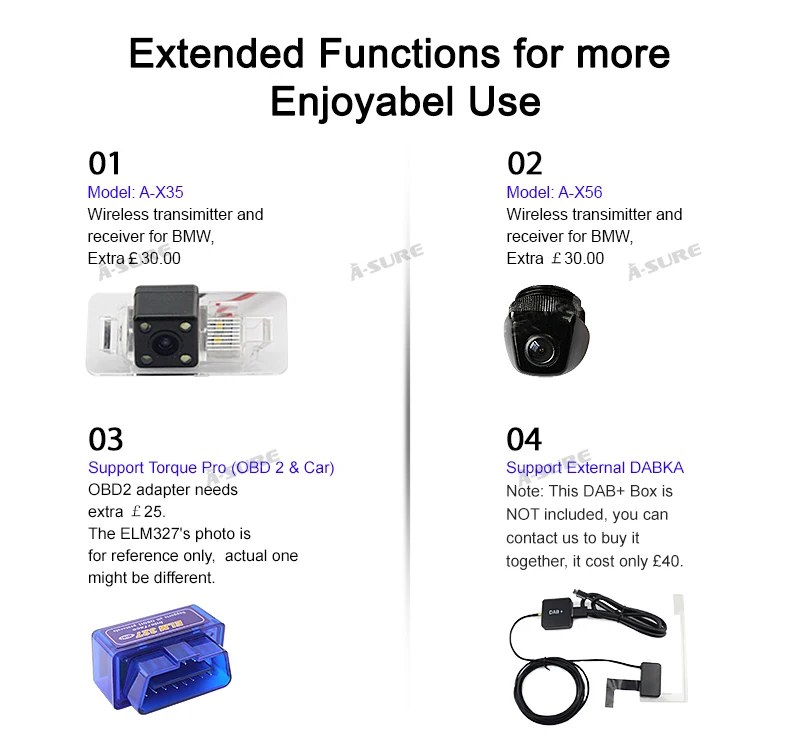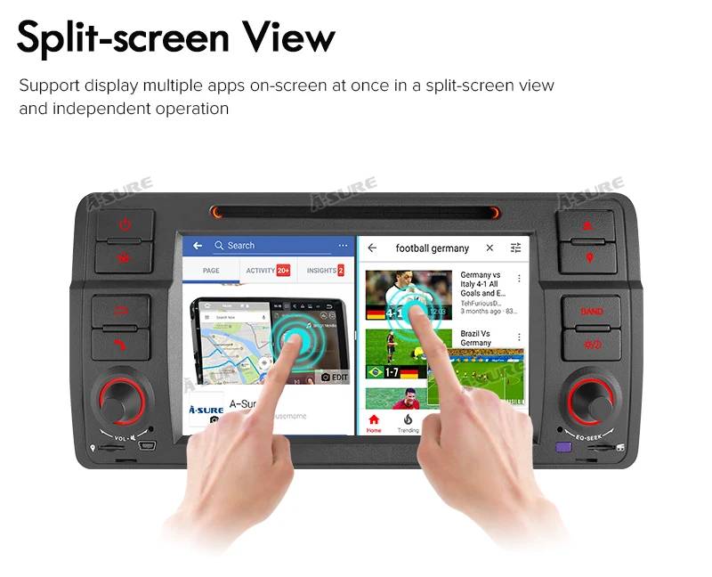 • The Auto Multimedia System Fits for: BMW 3 Serien 1998-2006 (BMW E46 platform) MW 3 Compact (E46) (2001/06-2005/02) BMW 2 Convertible (E46) (2000/04-2006) BMW 3 Touring (E46) (1999/10-2005/02) BMW 2 Coupe (E46) (1999/04-2006) Rover 75 1999~2004 MG ZT 2001~2004 Specification: Operating System: Factory Android 9.0 CPU:Quad Core Cortex A35 Max External Memory: 64G Resolution: 1024*600 TF/Micro SD Slot: 2 Double DIN Memory:32GB ROM +16GB SD Card,4GB RAM Interface:Quadlock plug Radio IC:NPX6686 Screen :IPS OSD Language:Chinese /Arabic/German/Russian/French/Portuguese/Japanese/Thai/Turkish/ Greek/Spanish/Italian/English/Polish Main Function: MP3 Players/Radio/Wifi Function/Built-in GPS/ Bluetooth/Touch Screen/Steering Wheel Control/ A-SURE FAQ /Mirror Link/Voice Control/ Special Feature(Optional.extra pay): Support 4G Network/Support DAB+/Support OBD2/Support TPMS/Support DVR/Support Rear view Camera Parcel include: 1 x Multimedia Radio 1 x AUX Cable 1 x AUX Cable 1 x Wifi Antenna 1 x Micphone 1 x GPS Cable 1 x USB Cabe 1 x 16G SD 1 x English manual 1 x USB Cable 1 x Fixed Screw 1 x Power Plug 1 x Radio Cable ​================================================================================== Notice: *The radio is full-touch screen, remote control is not needed, which is not included in this item. *BeforePurchase,dopleasecarefullycheckthedimensionssoastoavoidinconvenience. *If yours is fiber optic plug, you need to buy extra5Mextension kitabout 35GBP from us. *We are a professional in-car radio & GPS navigation manufacturer with 10-years experience. With warehouses inUK,Germany, US andAustralia, we can delivery items to you quickly (usually 1 working day dispatch), you will not be charged with import tax. As to return, we offer hassle-free return service, you can return item you purchased from A-Sure to ourUKaddress, a simple and efficient way. Just enjoy your item and our professional service. Key features: *Easy installation: Plug and play harness, save time and money. *Bluetooth Handsfree: Support A2DP Music streaming and Phonebook download & Display, make your Journey more convenient and safe. *Steering Wheel Control: support the Steering Wheel Controls perfectly and precisely. *FullEurope3D maps: find the best way for you, the most economical, the shortest, or customize your route like avoiding highway, all no problem and all is for you. *High performance in-car entertainment System: Unique and professional entertainment solution, bring you the High performance entertainment experience, the journey will be not boring anymore. Why Shop With A-Sure? A-SURE aims to bring the most exciting products to your door. Are you looking for new products and technologies that can facilitate your life, as well as with a very good price/performance ratio? All these are what we A-SURE do and concern for you. Actually we represent a manufacturer who produces some of the most competitive products on market, will carry a vast selection of value-priced novelties. And all goods can be brought to your door at reasonable prices. Your order will be QC checked for minimum 3 times prior to delivery to you. Think of A-SURE as most efficient and reliable cross-border shopping helper around. We have over 8 years worth of experience in In-Car entertainment. Professional and Fast service, Constant Innovation help us to be the one you can count on. You can get the below unique service and features from our commodities: All our items are tested to ensure working properly before shipping. All our items come with a 1-year Manufacture Warranty.The warranty will not cover damage from improper installation, accident, misuse, abuse, improper wiring, and incorrect voltage operating the unit against the instructions in the owner's manual. You may cancel your order within 30 days If the article is found to be defective upon receipt - by returning the article for refund. The time limit begins after receipt of this notification in writing, but not before receiving the goods to consignee. Buyer must pay the postage cost for sending the item back to us under any circumstances. Please inform us of the reason of your order revocation and send us a clear picture or a video as a proof. Items returned to us without a report will not be processed. We highly recommend that all items are installed by professionals. We will not be responsible for items that have been damaged during installation by non-professionals.Please read all ourterms stated in our listing before purchase Note: Installation Fees are out of our control, they must be paid by Buyer. Installation fees are not included in this transaction, they will not be refunded/covered by usat any circumstances.